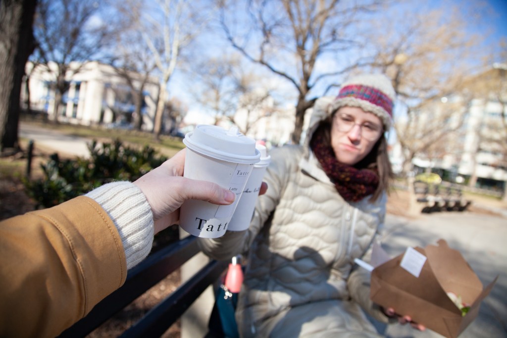 Over the weekend, I met my friend at Tatte in downtown DC. We picked up a hot coffee and a bite to eat and walked over to Dupont Circle. We were probably the only people brunching—it was a little too cold, to be honest. But with our lattes to keep us warm it was still really nice to catch up outdoors.